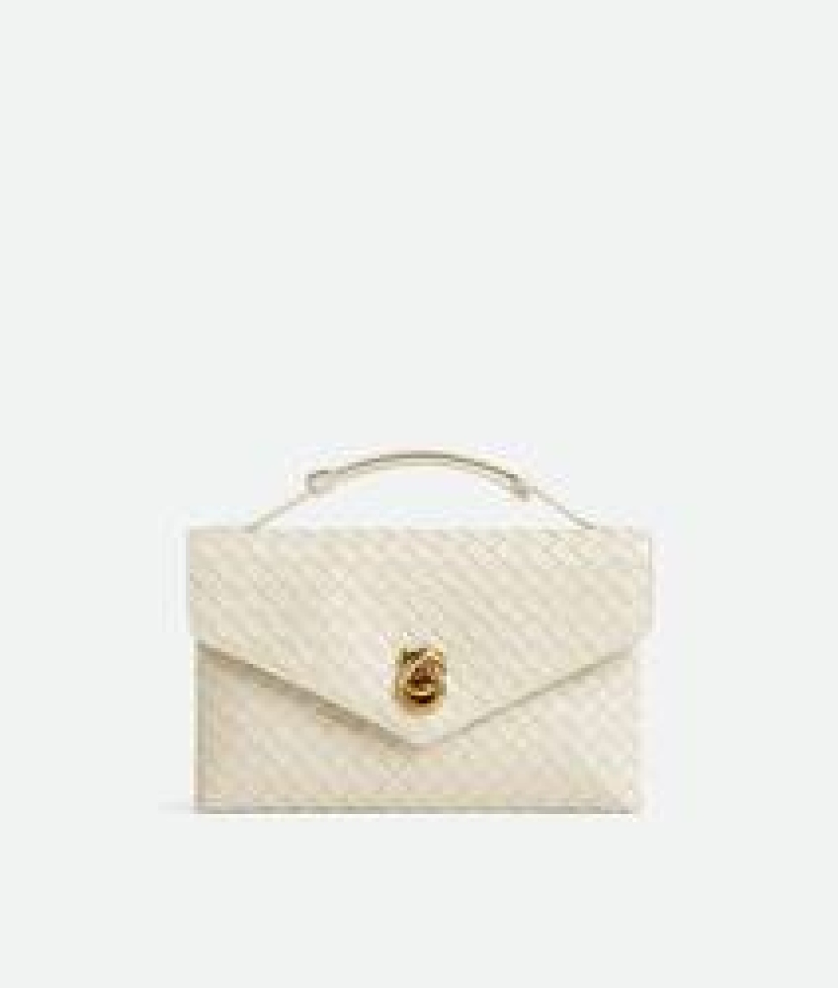 Cross-body bag in leather with adjustable top handle and sculptural knot closure.