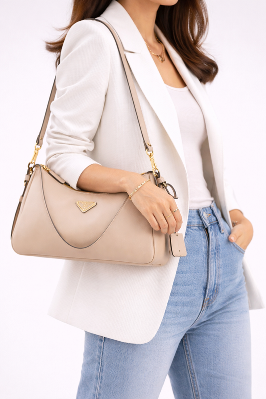 El Aimée de piel mediano es la opción ideal para el día a día en la ciudad, perfecto para el trabajo, paseos por la ciudad o reuniones informales. Su tamaño compacto te permite llevar lo esencial como el teléfono, la cartera, las llaves y pequeños artículos de aseo, manteniendo una forma suave y elegante, ya sea al hombro o cruzado.