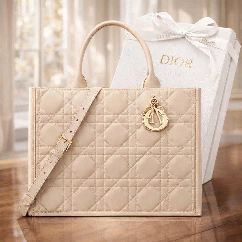 El Dior Book Tote de cuero mediano es una sofisticada reinterpretación del icónico diseño de Maria Grazia Chiuri, donde la artesanía Dior se fusiona con el estilo de vida moderno. La lujosa piel de becerro negra está acentuada con atrevidos detalles Macrocannage, creando un look elegante y distintivo. Con su espacioso interior, su diseño ligero y sus versátiles opciones de transporte, este bolso no es solo un accesorio de moda, sino también el compañero ideal para el trabajo, los viajes o la dinámica vida diaria.