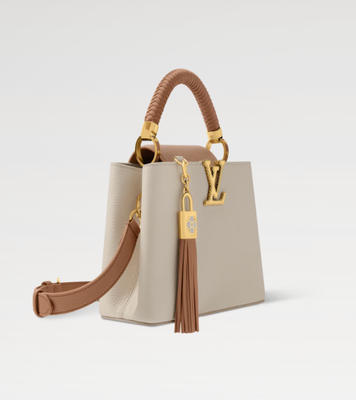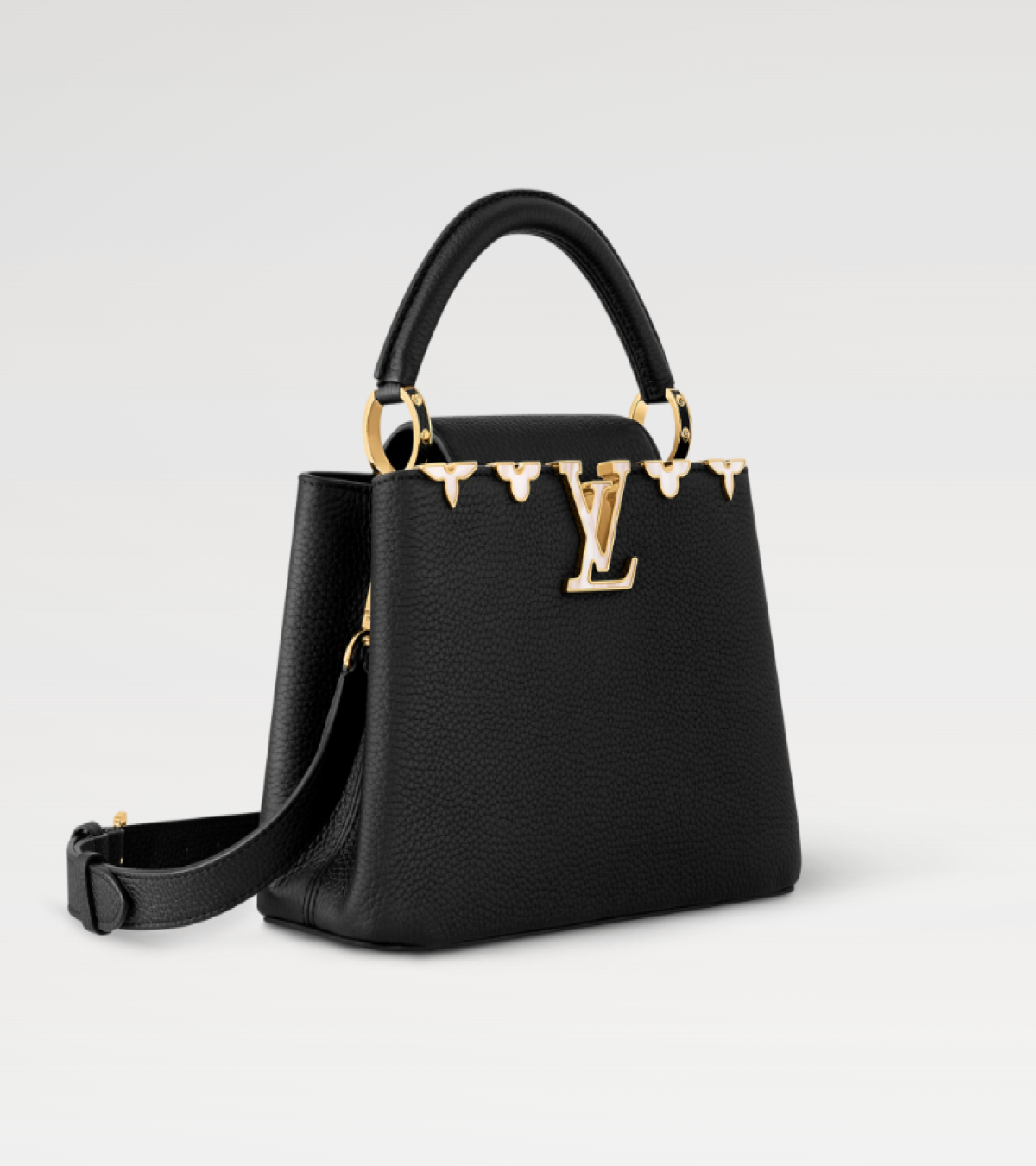 Este emblemático bolso Capucines BB, confeccionado en piel Taurillon granulada, destaca por los detalles distintivos de la Maison, como el logotipo LV Initials revestido en piel, las sujeciones del asa tipo joya inspiradas en los tradicionales baúles o la solapa característica del modelo con flor Monogram. El diseño original, creado en 2013, evoca la calle parisina donde Louis Vuitton abrió su primera boutique en 1854. Elegante y atemporal, esta delicada pieza puede llevarse en la mano o cruzada gracias a la bandolera extraíble.