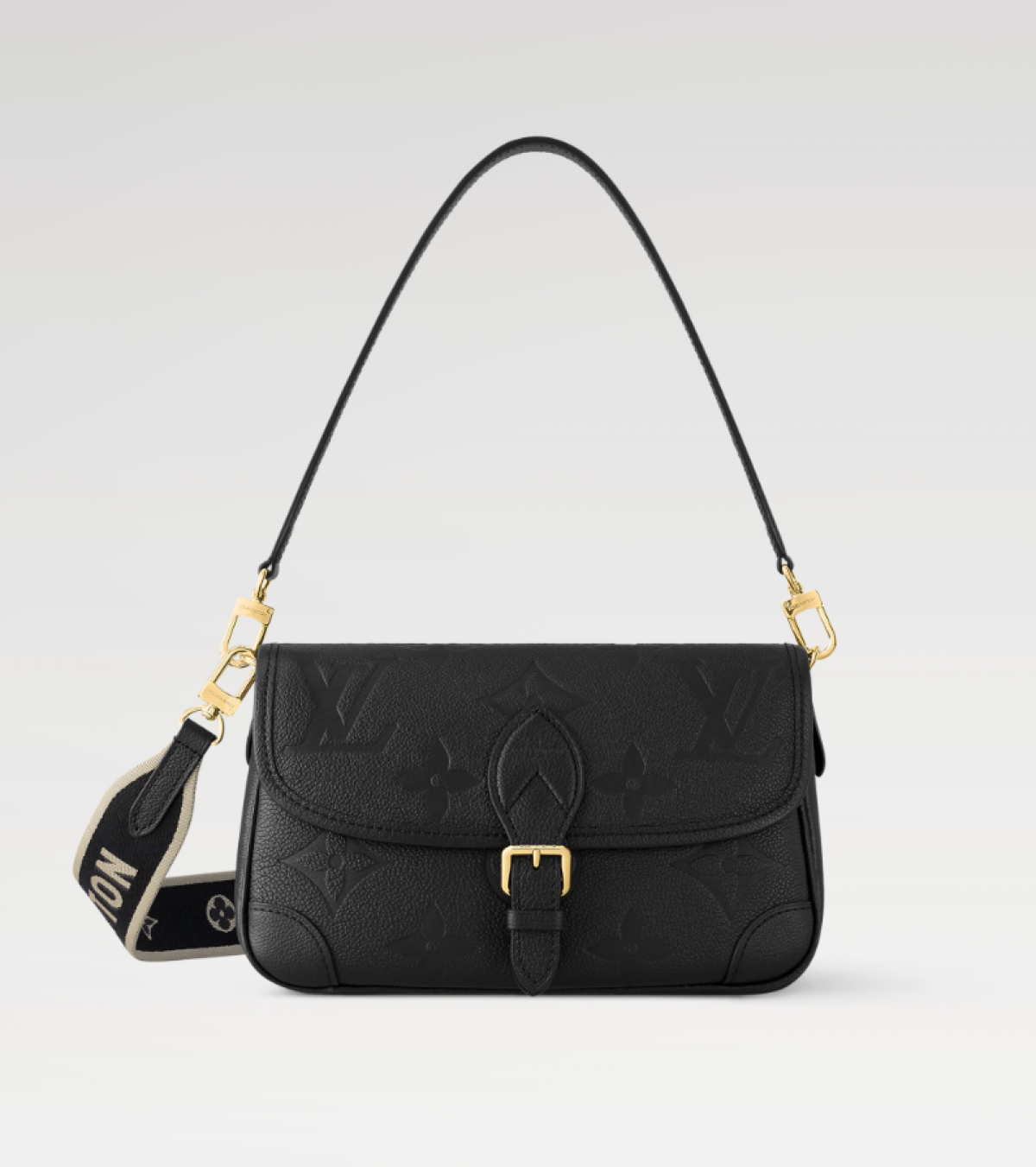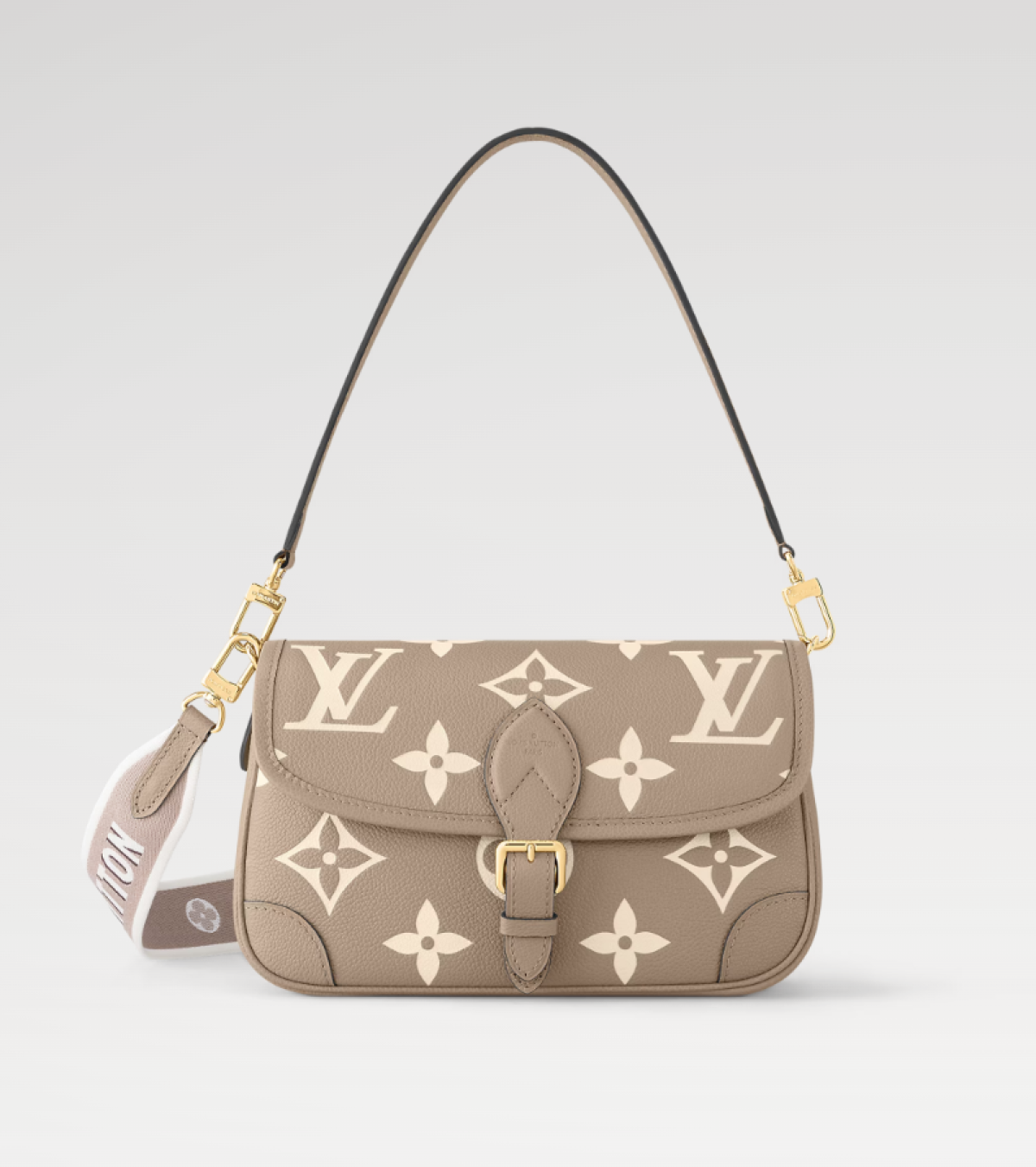 El bolso satchel Diane está confeccionado en la emblemática piel Monogram, caracterizada por un motivo en relieve. Puede llevarse en la mano o al hombro gracias al asa corta y extraíble en piel, o lucirse cruzado mediante una bandolera ancha, también extraíble, que presenta un distintivo Louis Vuitton en Jacquard. Este versátil accesorio combina a la perfección con looks elegantes y deportivos.
