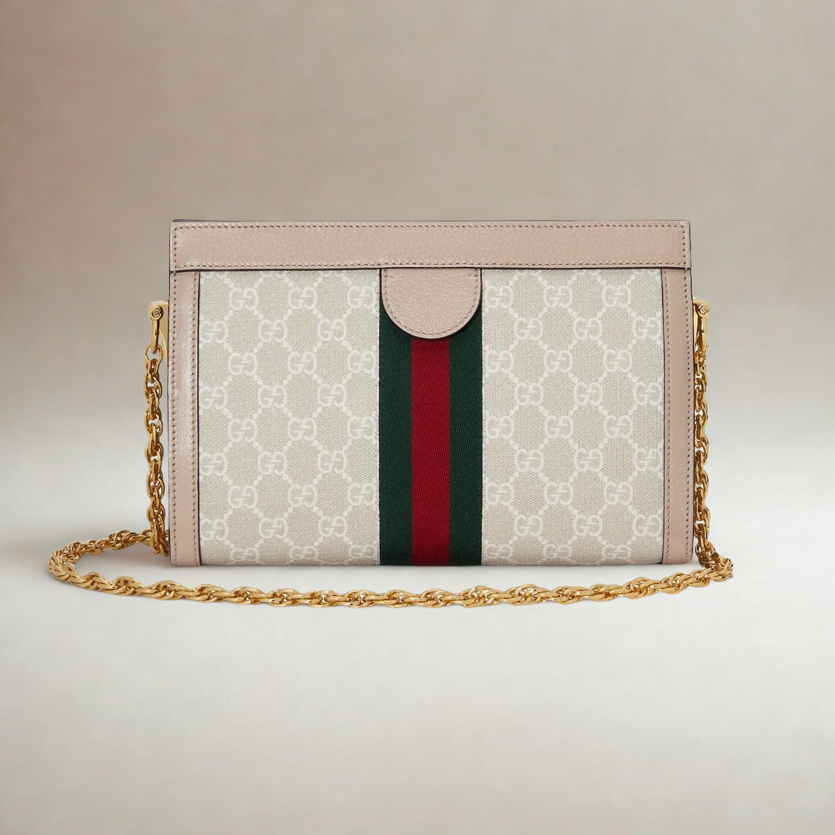 El bolso Ophidia evoca la herencia de Gucci mediante la icónica franja Web y el emblema Double G con acabado en tono dorado claro. Confeccionado en tejido revestido y realzado con ribetes de piel marrón, este diseño combina elegancia clásica y funcionalidad moderna, ofreciendo una organización práctica gracias a sus múltiples compartimentos. Su correa de cadena permite llevarlo cómodamente al hombro.