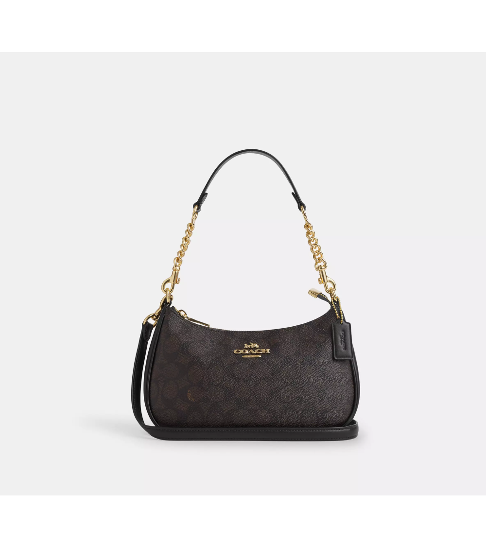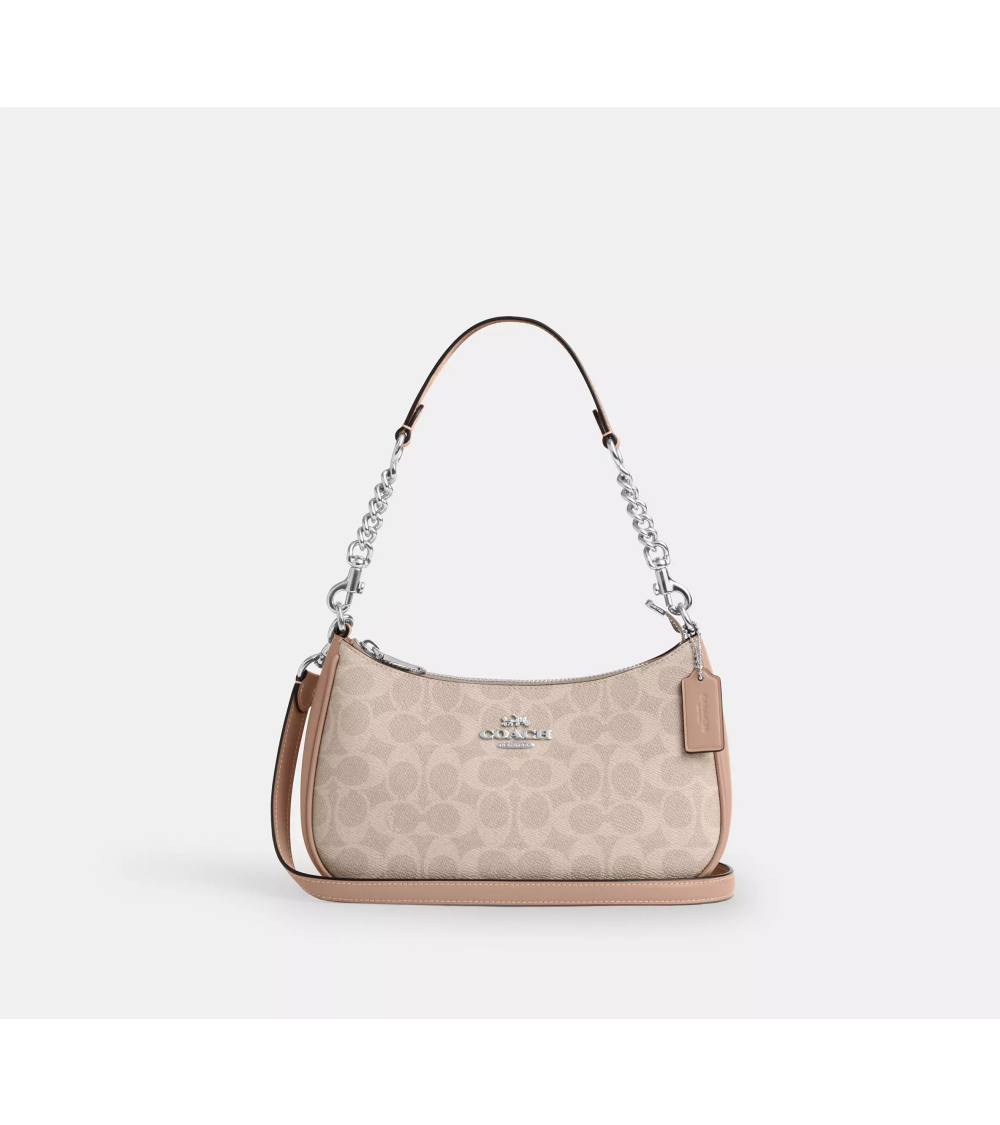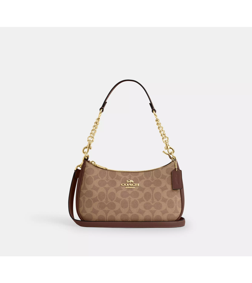 El bolso de hombro Teri es un diseño compacto y versátil para el día a día, confeccionado en lona revestida Signature para un acabado refinado y a la vez resistente. Su silueta estilizada se complementa con un interior práctico con un bolsillo multifunción, ideal para llevar lo esencial. Con asa y correa desmontables, ofrece múltiples opciones de estilo: llévalo en la mano, al hombro o cruzado.