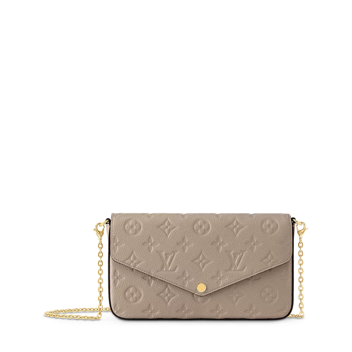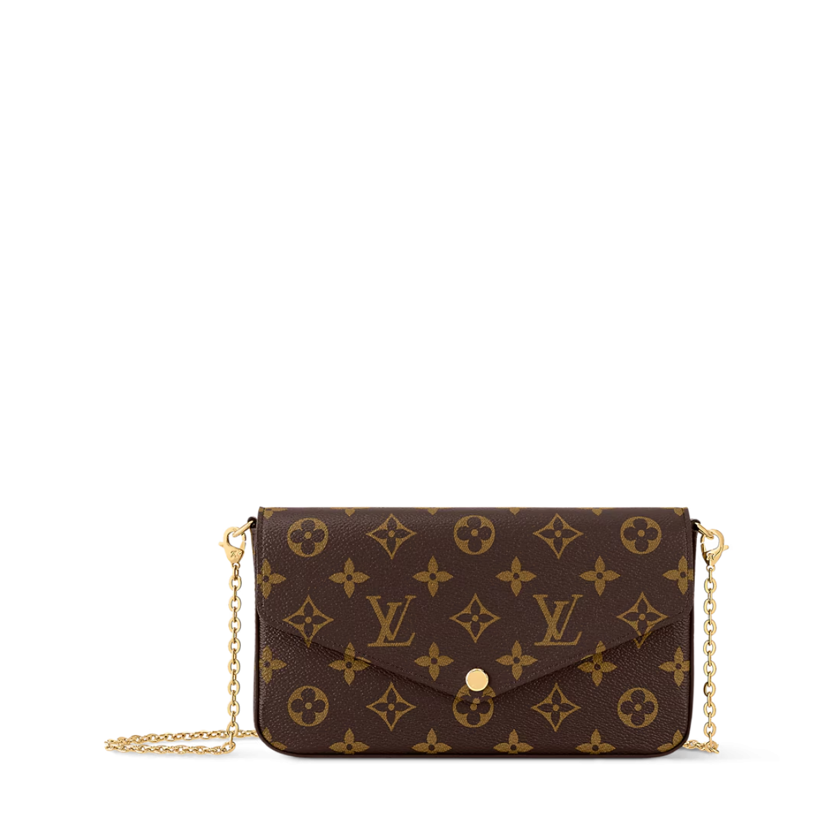The Félicie Pochette is crafted from iconic Monogram canvas. The interior features two removable inserts—one zipped pocket and one flat pocket with eight card slots—allowing for flexible organization. Finished with a detachable gold-tone chain, the bag can be styled as a shoulder or crossbody piece, making it ideal for both day and evening use.