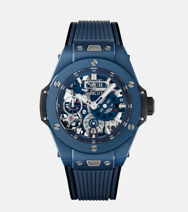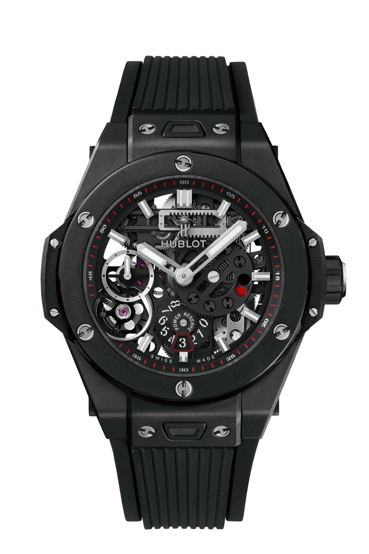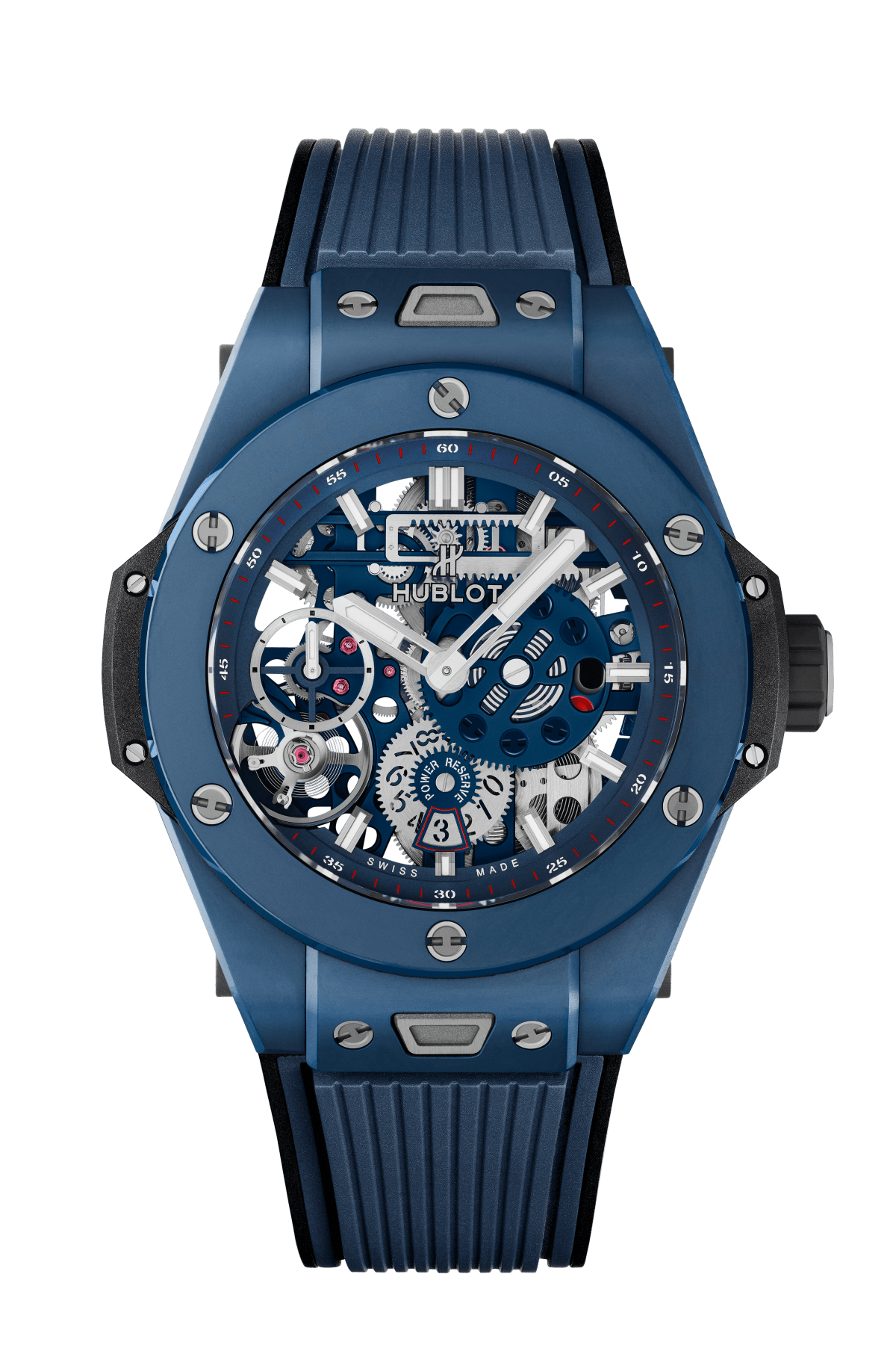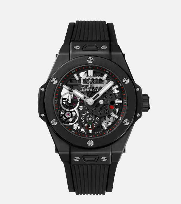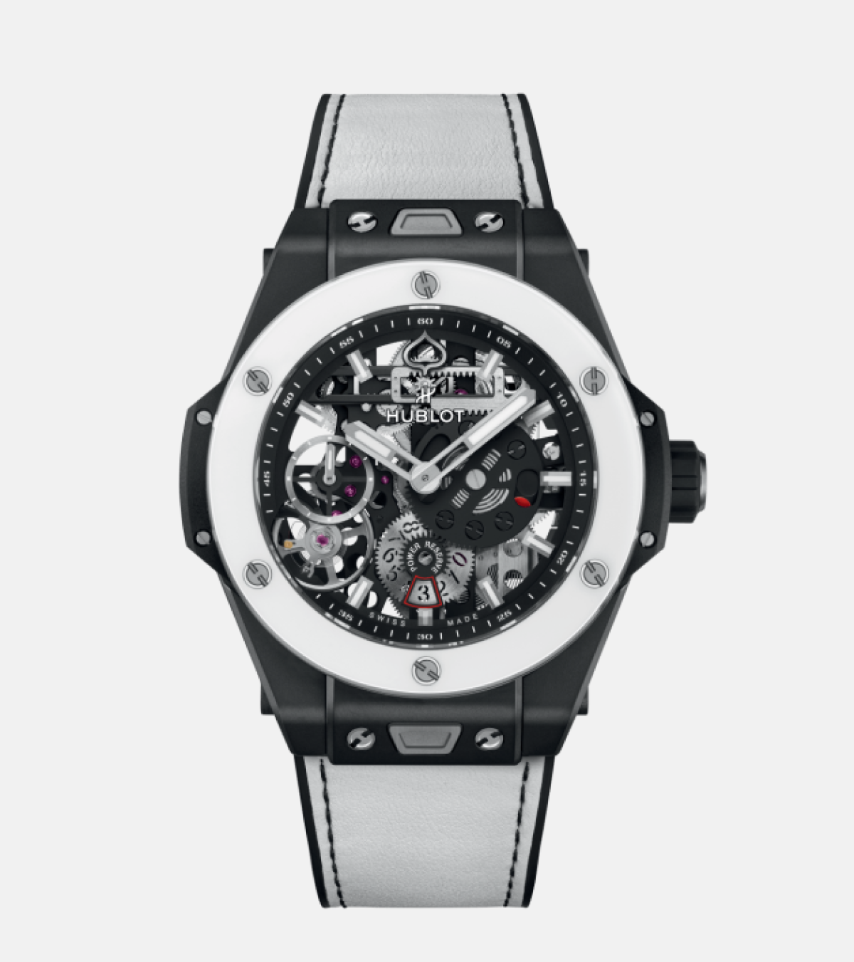 Materiales del "Arte de la Fusión": El Meca-10 está disponible en varias versiones de caja, incluyendo Titanio, King Gold (el oro patentado por Hublot), Cerámica negra (Black Ceramic) e incluso Magic Gold (oro resistente a los arañazos).