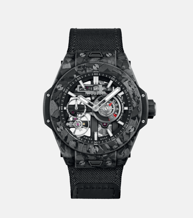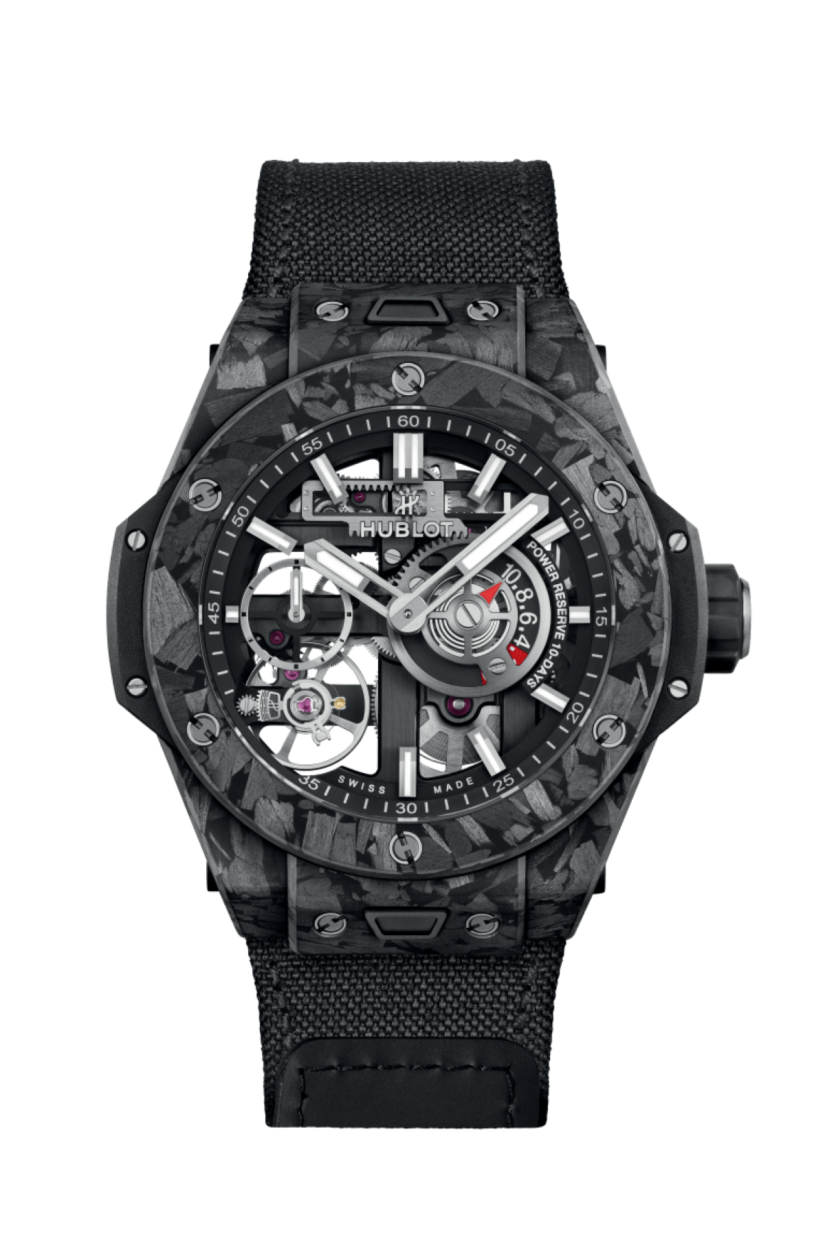 Materiales del "Arte de la Fusión": El Meca-10 está disponible en varias versiones de caja, incluyendo Titanio, King Gold (el oro patentado por Hublot), Cerámica negra (Black Ceramic) e incluso Magic Gold (oro resistente a los arañazos).