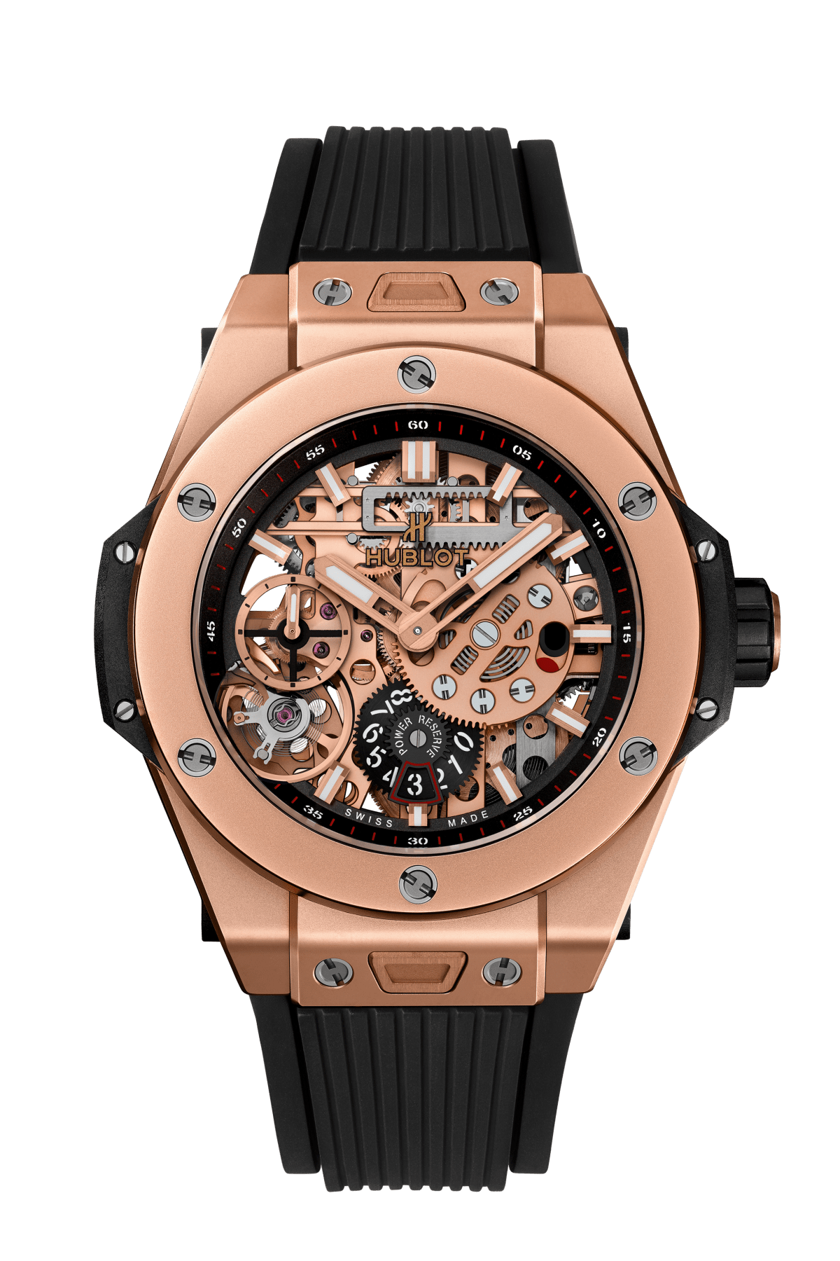El Hublot Big Bang Meca-10 es un reloj que celebra la belleza de la ingeniería mecánica, con un diseño inspirado en los juegos de construcción mecánicos como Meccano. La característica más única y destacada de esta línea es el movimiento "de manufactura" desarrollado específicamente para él.