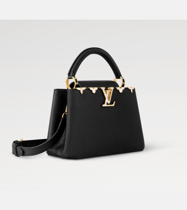 Este emblemático bolso Capucines BB, confeccionado en piel Taurillon granulada, destaca por los detalles distintivos de la Maison, como el logotipo LV Initials revestido en piel, las sujeciones del asa tipo joya inspiradas en los tradicionales baúles o la solapa característica del modelo con flor Monogram. El diseño original, creado en 2013, evoca la calle parisina donde Louis Vuitton abrió su primera boutique en 1854. Elegante y atemporal, esta delicada pieza puede llevarse en la mano o cruzada gracias a la bandolera extraíble.