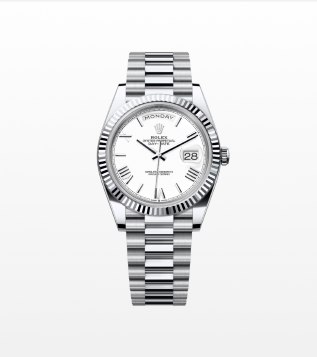 El Rolex Day-Date, lanzado por primera vez en 1956, es uno de los relojes más prestigiosos e icónicos de la marca. Fue el primer reloj de pulsera cronómetro, hermético y automático del mundo en mostrar tanto la fecha como el día de la semana escrito completo en una ventana en forma de arco a las 12 en punto.