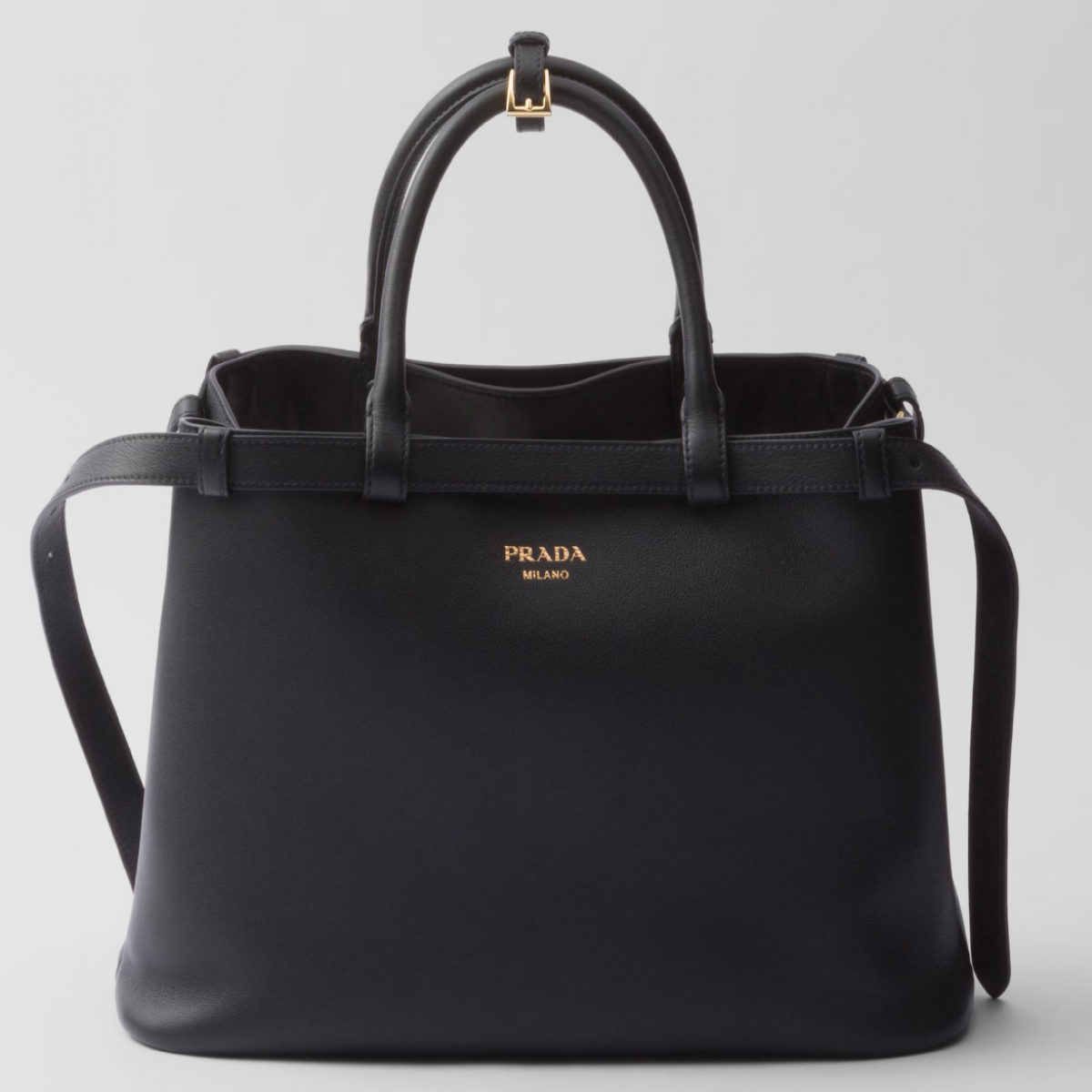 Prada Buckle medium leather handbag with double belt